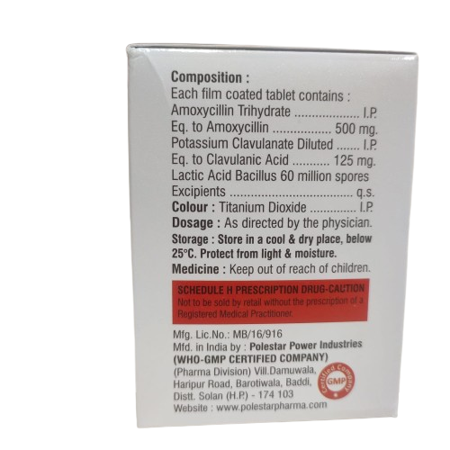 – LB 625 combines Amoxicillin, Clavulanic acid, and Lactic Acid Bacillus to
