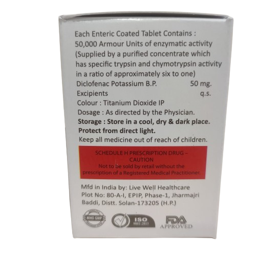 Chymotake D combines the power of Chymotripsin, Trypsin, and Diclofenac in a balanced 6:1 enzymatic ratio to provide dual relief for joint support and pain management. Its unique formula addresses various types of discomfort, ensuring swift relief for patients. The tablet offers an effective solution to alleviate pain, inflammation, and discomfort associated with multiple medical conditions.