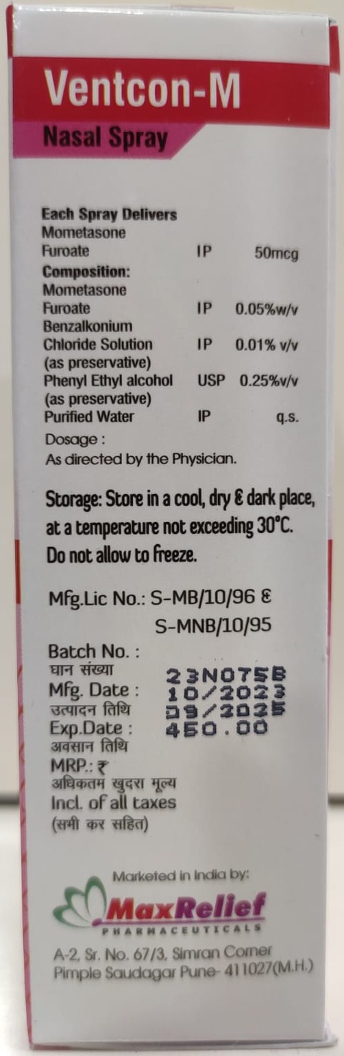 VENTCON M Nasal Spray is distinct in its comprehensive allergy relief approach, combining Mometasone Furoate with additional active ingredients. The uniqueness of VENTCON M is its ability to offer complete symptom alleviation for various conditions like allergic and non-allergic rhinitis, sinusitis, and nasal inflammation, making it the doctor's choice for comprehensive allergy relief.